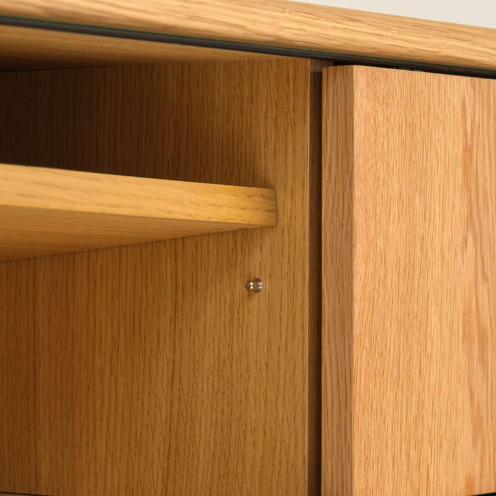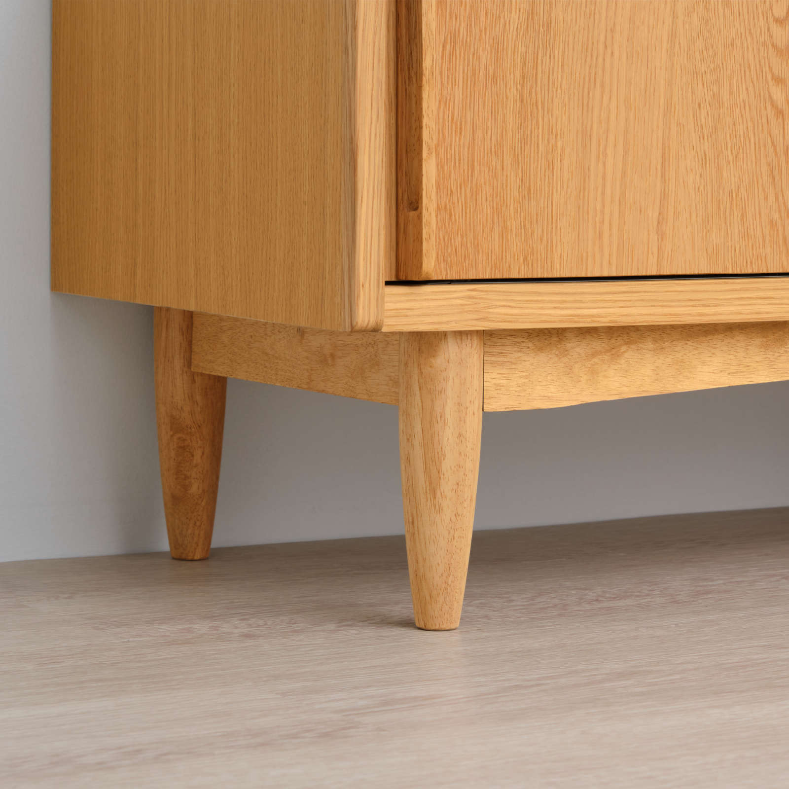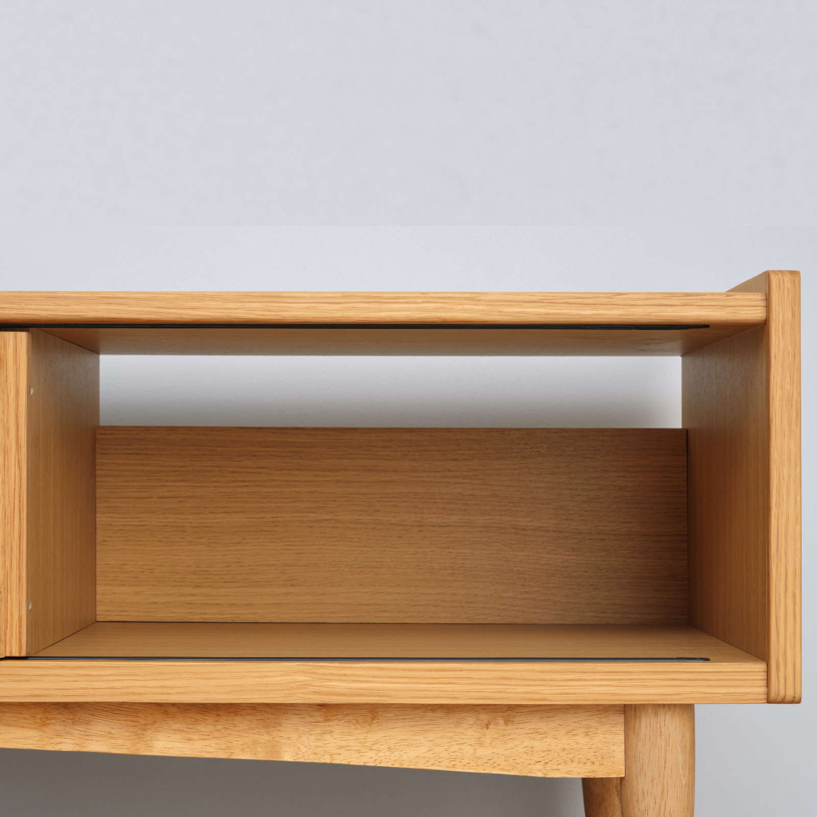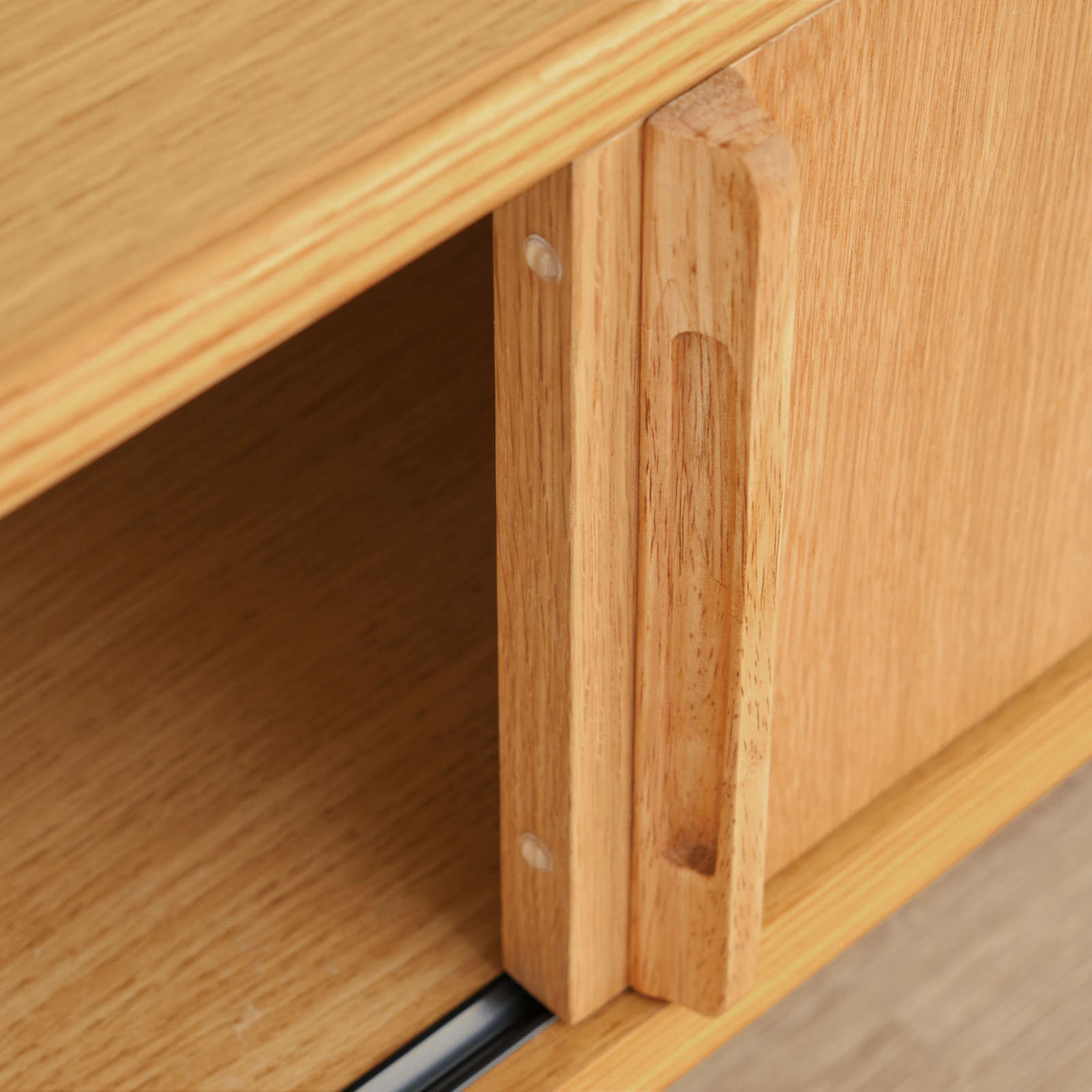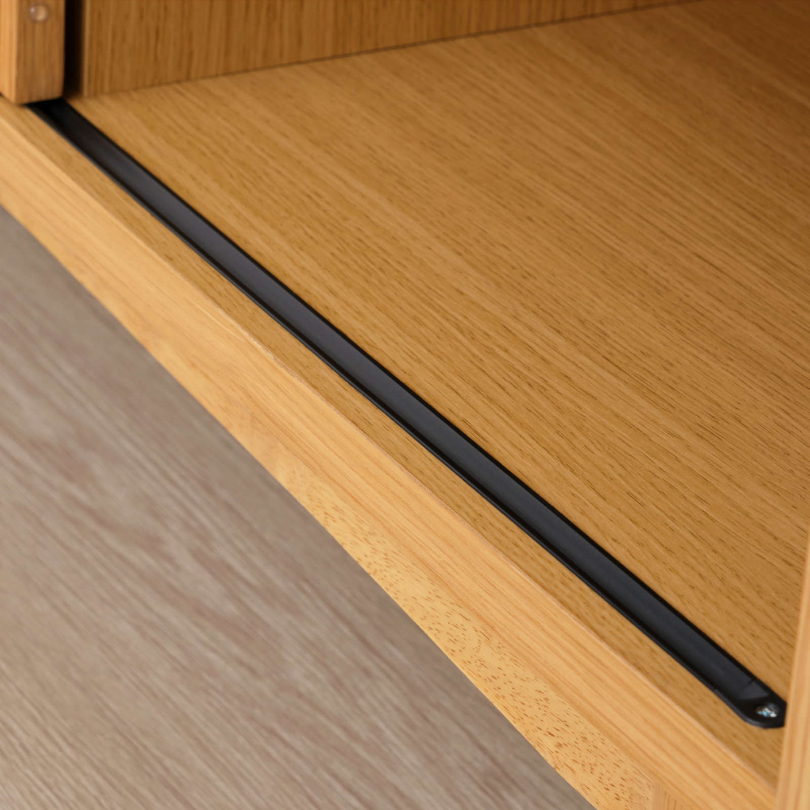北欧ヴィンテージを意識した「引戸」に、天然木の突板を使ったナチュラルなテレビボードは、大型テレビが設置できるゆったりサイズです。北欧家具を思わせる洗練されたデザイン性と、配線などがスムーズに行えるように配慮された機能性を兼ね備えており、収納もたっぷりと設けられています。