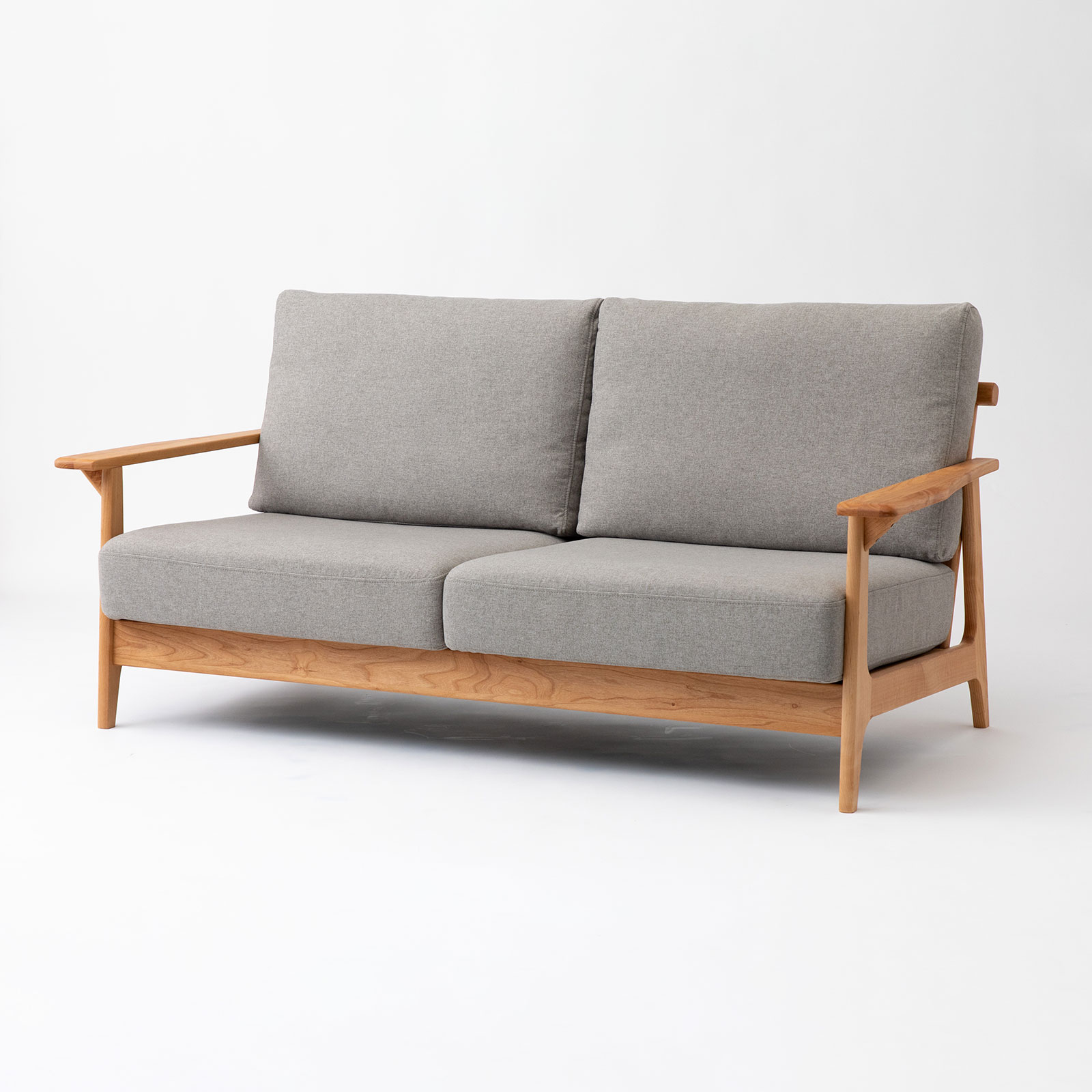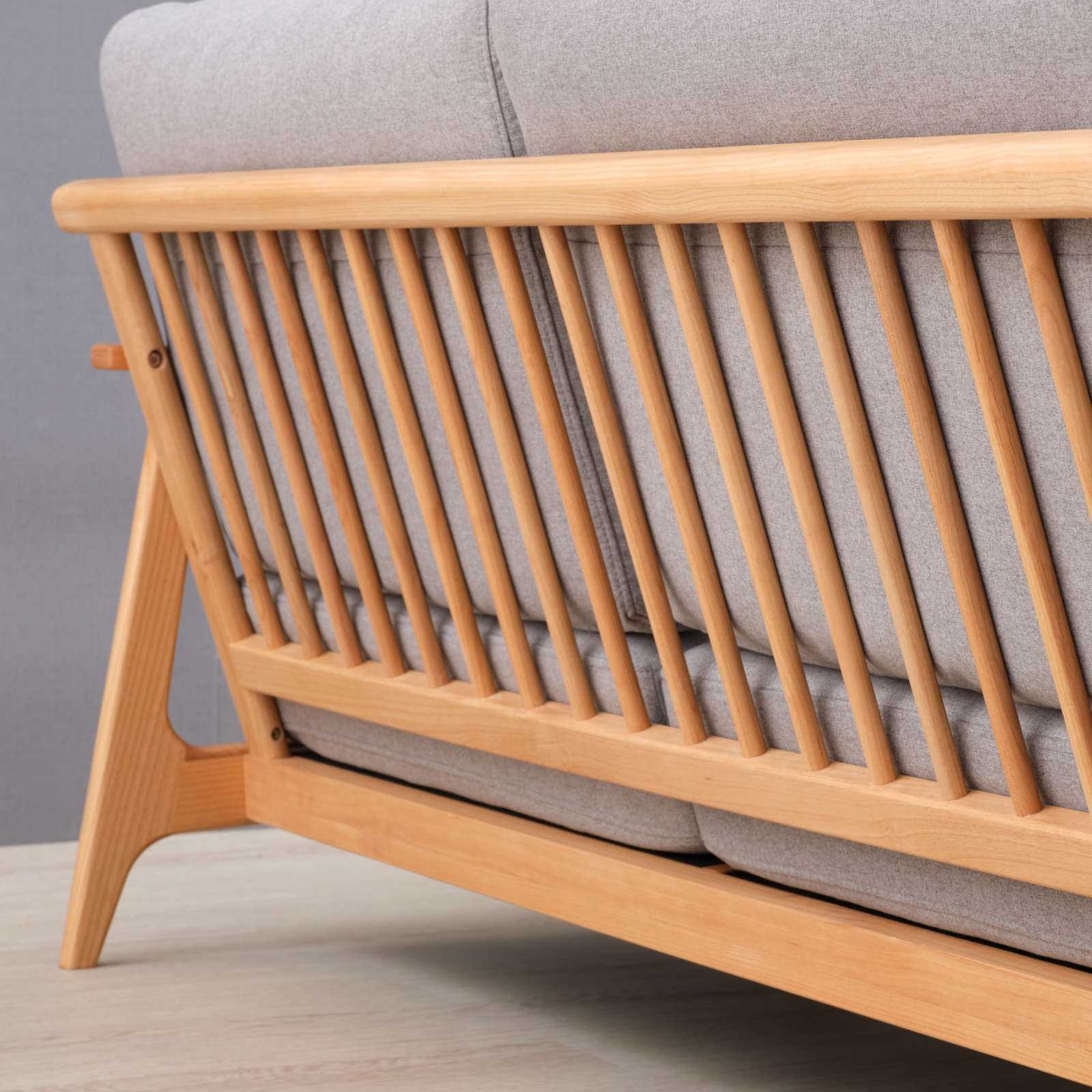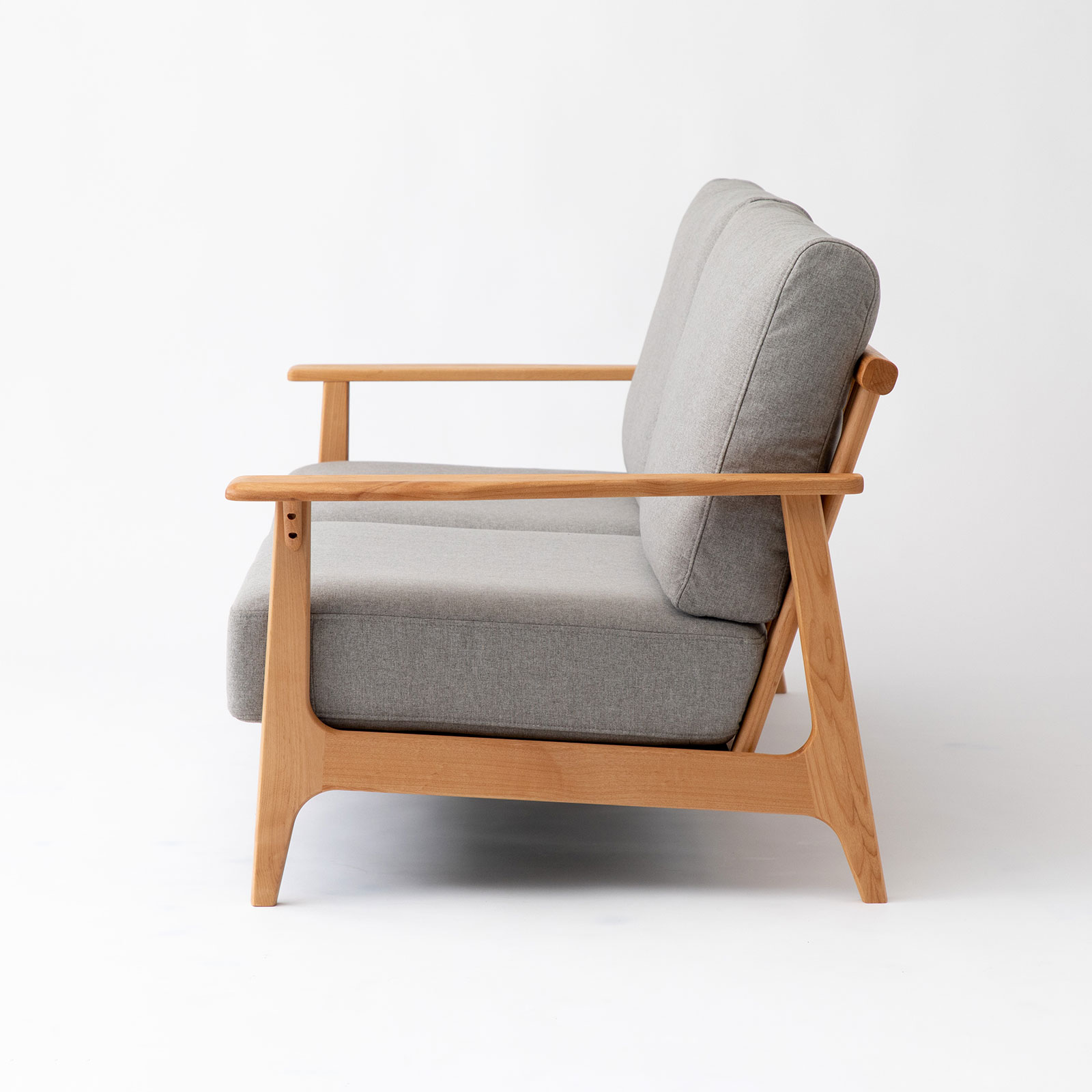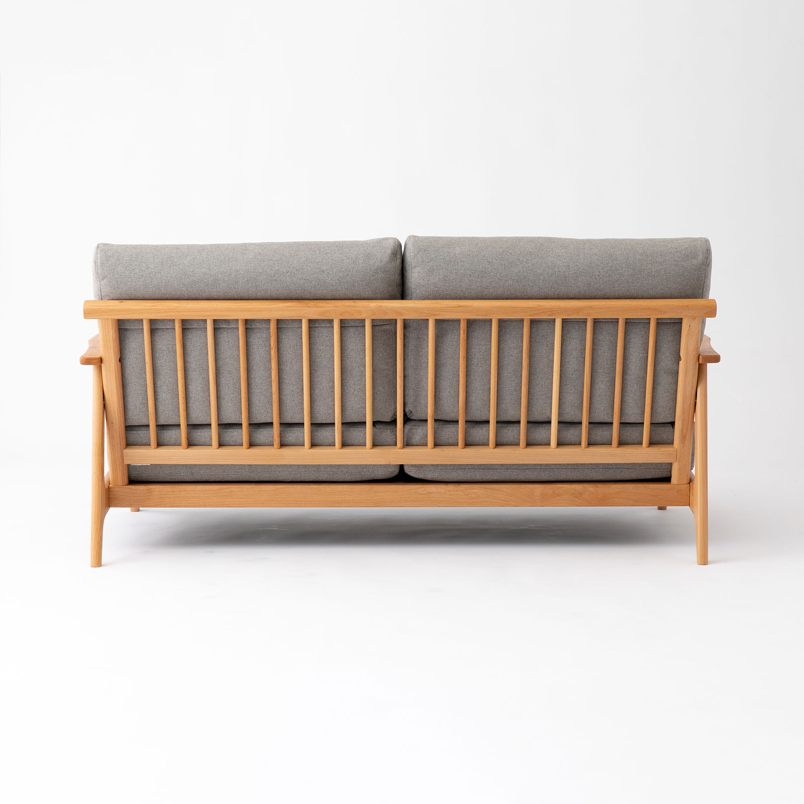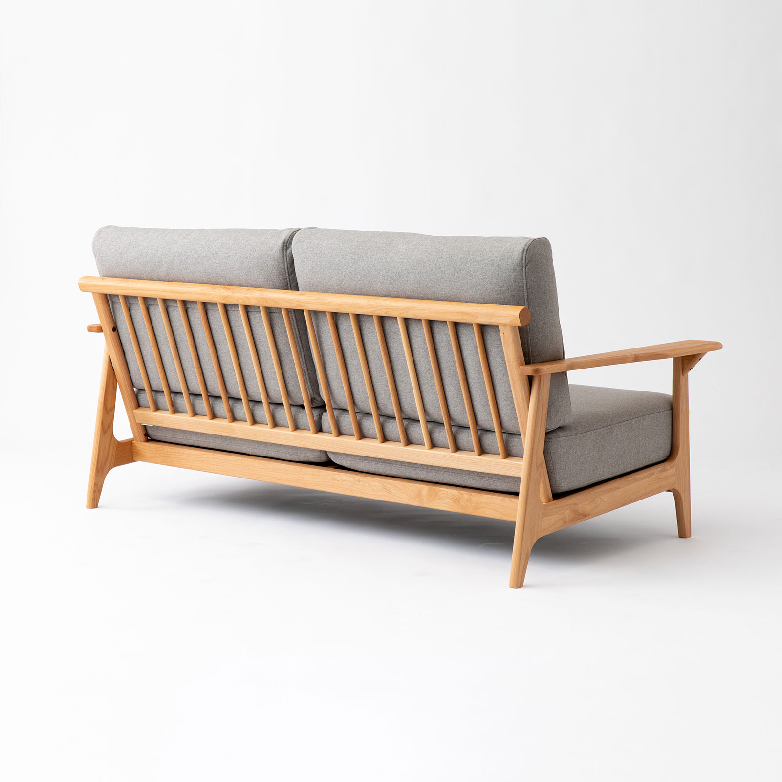 くつろぎの時間にぴったりの2.5人掛けソファ。ゆったりと座れる座面は内部にポケットコイルを採用。やさしく体を受け止めてくれます。また、モノトーンなファブリックに丸みのある無垢材のフレームが映え、ナチュラルな印象をプラスしているのもポイントです。背面は繊細な格子デザインで、360度美しいソファに。クッションやカバーは取り外し可能でお手入れも楽に行えます。